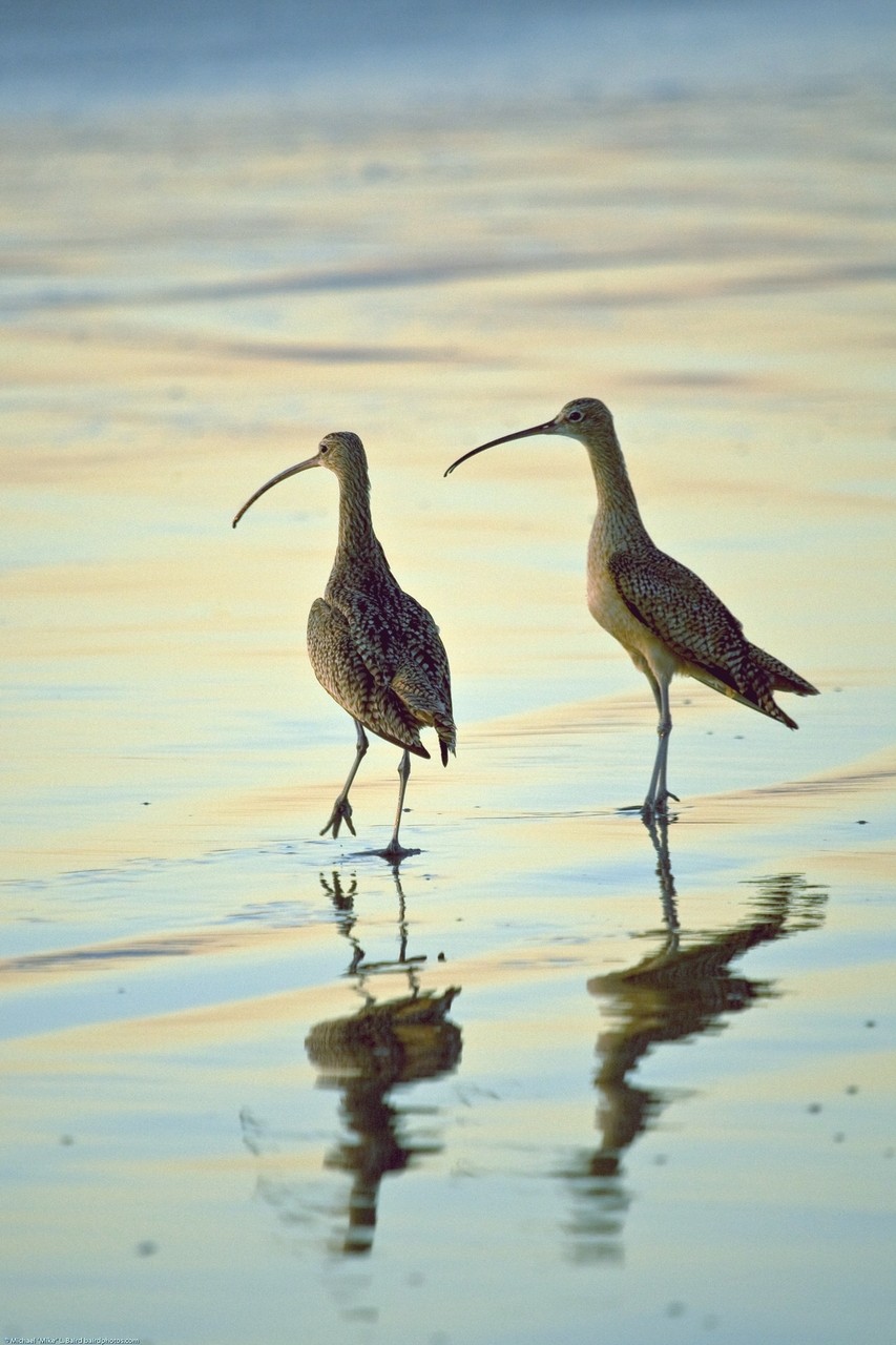 Birds on Morro Strand State Beach During a Golden Sunset.